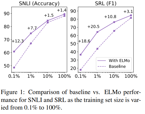 4. 지도 모델의 나머지 부분은 변경되지 않은 상태로 유지되기 때문에 ELMo의 추가와 같은 것은 보다 복잡한 신경 모델 context에서 발생 가능하다.
