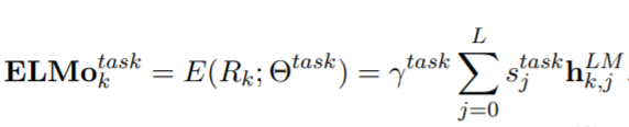 - ELMo는 biLM의 중간층들의 표현들을 task-specific 하게 결합, biLM의 L개 layer에는 각 토큰 tk당 2L+1개의 표현을 계산