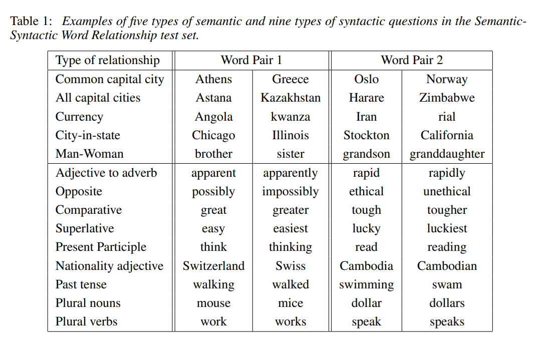 - 저자들은 많은 양의 데이터에 대해 이를 사용하여 고차원 단어 벡터를 훈련하고, 이 결과 벡터를 단어 간의 의미 관계에서 사용 가능하기 때문에 유용하다고 정리한다.